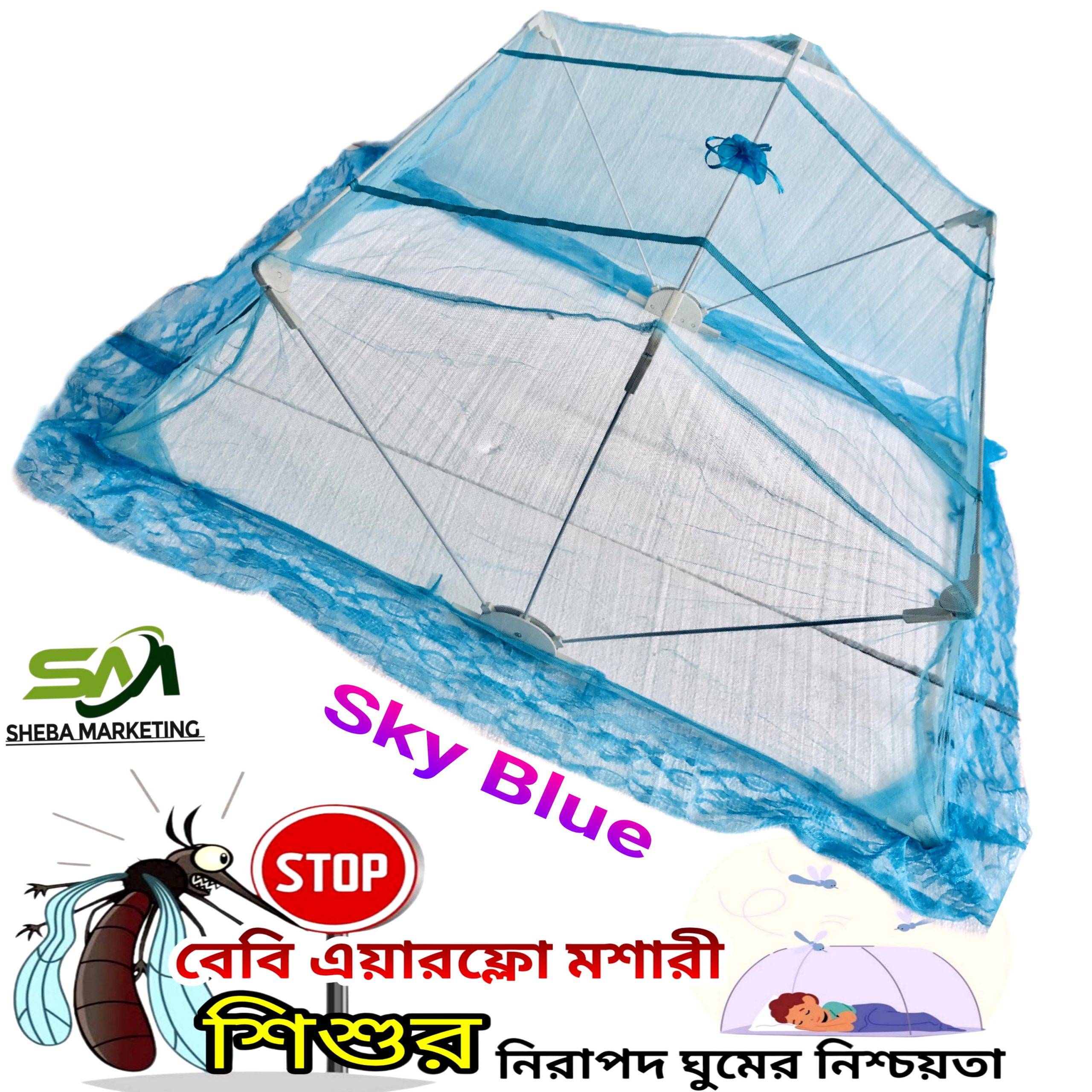 আপনার নবজাতক সন্তানের জন্য সবচেয়ে গুরুত্বপূর্ণ বিষয় হচ্ছে নিরাপদ ও আরামদায়ক ঘুম। শিশুর ঘুমে যদি কোনো ধরনের ব্যাঘাত ঘটে কিংবা মশা বা পোকামাকড় তাকে বিরক্ত করে, তাহলে তার শারীরিক ও মানসিক স্বাস্থ্যের উপর ব্যাপক প্রভাব পড়ে। তাই প্রতিটি সচেতন অভিভাবকের উচিত শিশুর জন্য মানসম্মত ও নিরাপদ মশারী নির্বাচন করা। সেই চাহিদা পূরণ করতেই Sheba Marketing নিয়ে এসেছে Baby Mosquito Folding Net Blue Sky Thai Quality