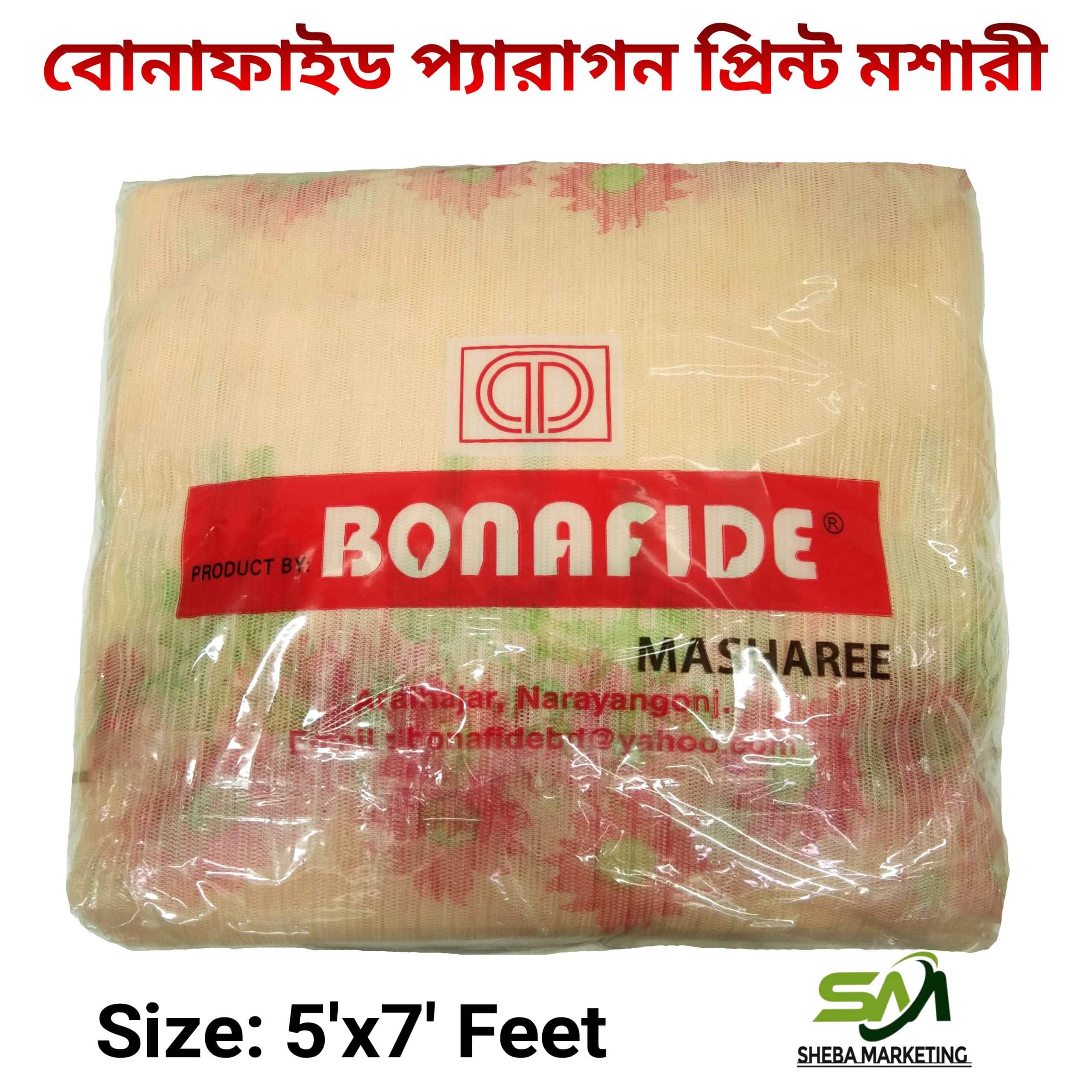 বোনাফাইড প্যারাগন প্রিন্ট মশারি ৫x৭ ফিট মশার আক্রমণ থেকে সম্পূর্ণ সুরক্ষার জন্য আদর্শ একটি মশারি। উন্নত মানের থান কাপড়ে তৈরি এই মশারিটি দেখতে আকর্ষণীয় এবং ব্যবহারে অত্যন্ত আরামদায়ক।