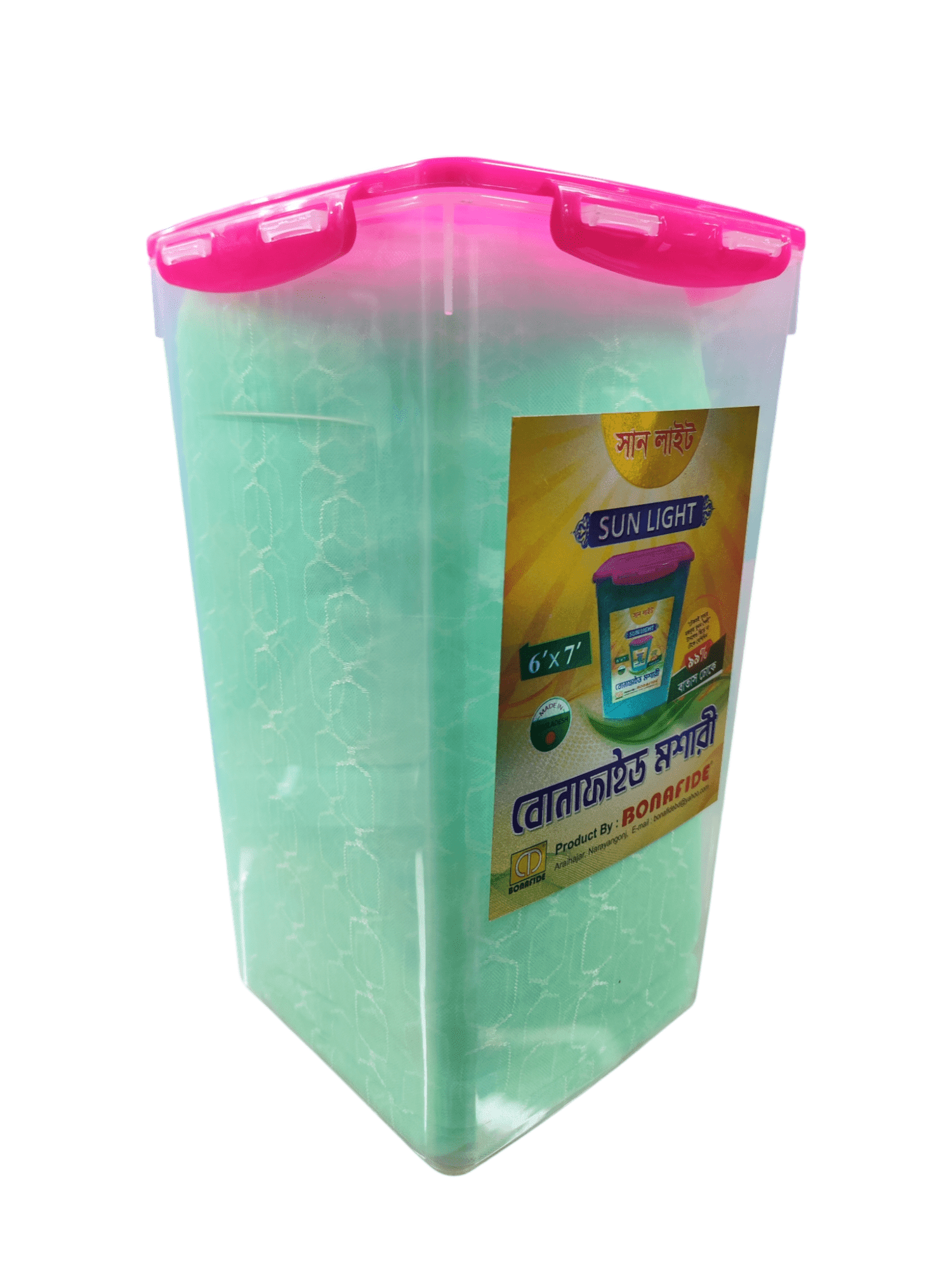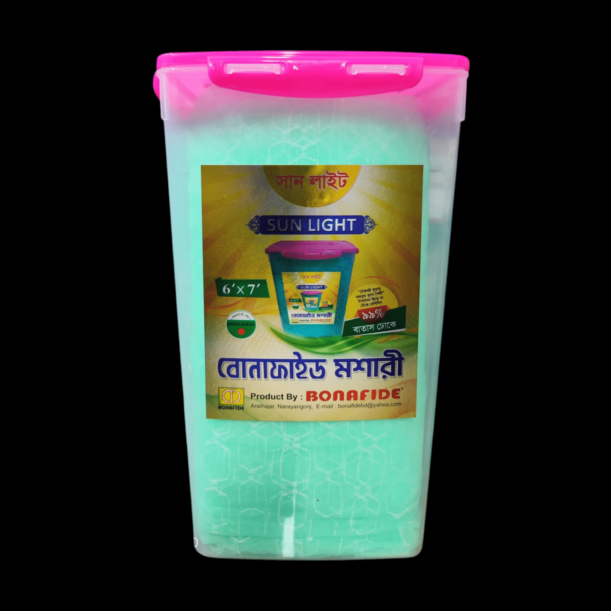 Bonafide Sunlight Mosquito Net বাংলাদেশের অন্যতম সেরা প্রিমিয়াম মানের রেডিমেড বিছানার মশারী। এটি বড় সাইজের হওয়ায় ডাবল, কুইন বা কিং সাইজ বেডের জন্য আদর্শ। মশা, মাছি এবং অন্যান্য পোকামাকড় থেকে নিরাপদ থাকতে এই মশারীই হতে পারে আপনার সেরা সঙ্গী।